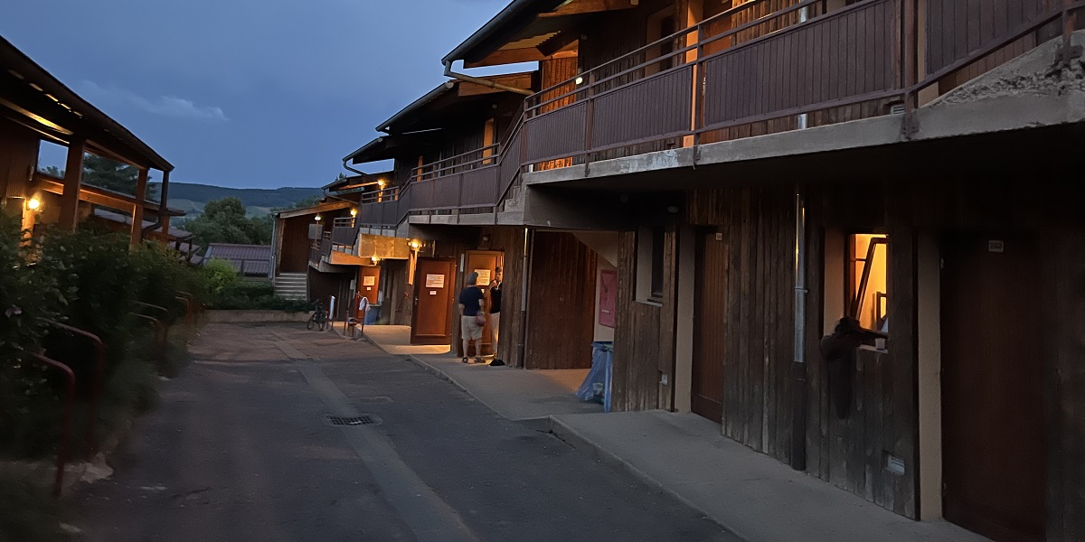 Nach einer langen Anreise mit Zug und Bus kamen wir um kurz vor halb Zehn in Taizé an und wurden sofort von einer Freiwilligen in Empfang genommen, die uns ein paar Dinge wie den Tagesablauf schilderte, der zwar durchstrukturiert war, aber trotzdem viele Freiheiten beinhaltete. Anschließend bezogen wir die Baracken, in denen wir die nächsten Tage verbringen sollten - obwohl Baracken die eigentliche Bezeichnung ist, aber einen falschen Eindruck hinterlässt. Die Unterkünfte erinnerten mehr an kleine Jugendherbergenzimmer, bei denen man beim Verlassen der Tür sofort draußen steht und nicht noch ein Haus verlassen muss. Abgesehen davon, dass sie sehr klein und nicht leicht zu lüften waren und man sie außerdem nicht abschließen konnte, waren die Zimmer aber tatsächlich sehr wohnlich.