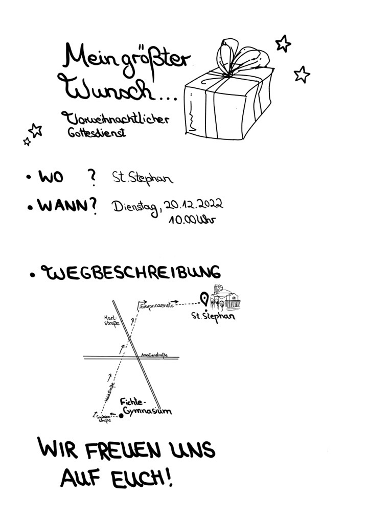 das Jahr neigt sich dem Ende zu, und die Weihnachtszeit lädt uns ein, innezuhalten und auf das Vergangene zurückzublicken. Gemeinsam haben wir ein spannendes und ereignisreiches Jahr voller Herausforderungen und Erfolge erlebt. Dafür möchten wir allen herzlich danken – für eure und Ihre Motivation, euren Einsatz und die vielen schönen Momente, die den Alltag am Fichte-Gymnasium bereichert haben.