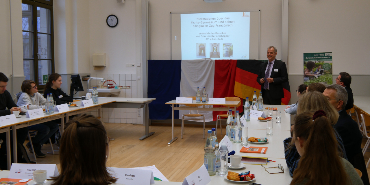 60 Jahre Élysée-Vertrag – Besuch der Amtsspitze des Kultusministeriums am Fichte-Gymnasium