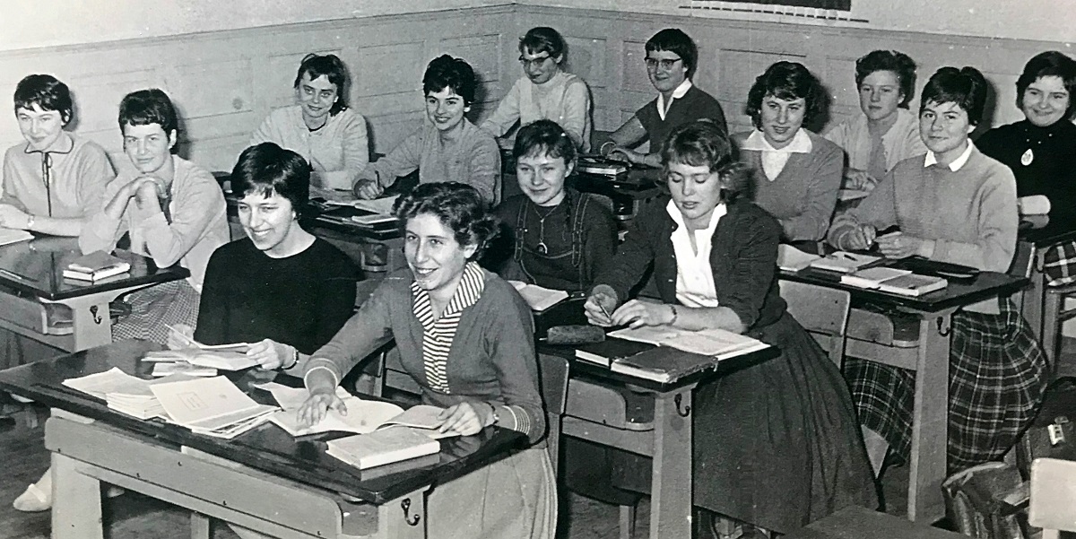 Am Freitag, den 21. September 2018, besuchten 20 goldene Abiturientinnen (Abitur-Jahrgang 1968) ihre alte Schule. In der Turnhalle erinnerten sie sich, wie sie sich zu Beginn immer der Größe nach aufstellen mussten (Foto) und man sich zu Musik warmlaufen musste. Damals stand nämlich noch ein Klavier in der Halle. Man war sich einig, dass man sehr gerne auf dem Fichte war, erzählte, wo früher heimlich geraucht wurde und entdeckte unbekannte Orte (z.B. das Dach). Es war ein großer Spaß.