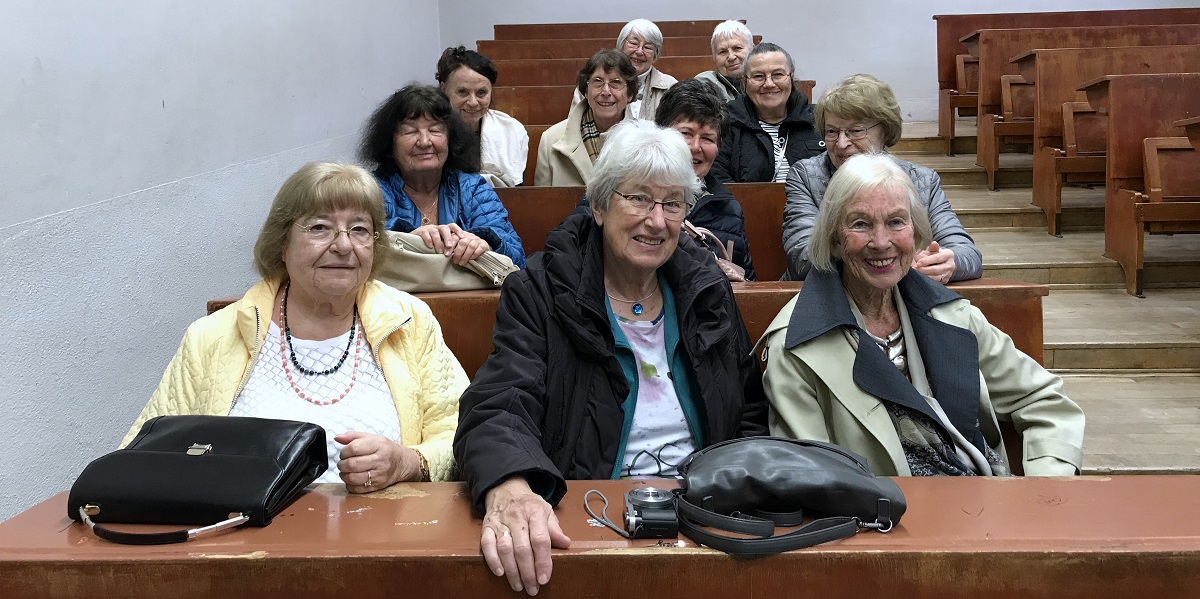 Am Samstag, den 28. September 2019, waren 20 ehemalige Schülerinnen der Oberprima a und d des Jahrgangs 1969 zu Gast an ihrer alten Schule, um das 50-jährige Jubiläum ihres Abiturs zu feiern. Auf dem Bild haben sie sich wie früher der Größe nach in der Turnhalle aufgestellt (wer genau hinsieht, wird bemerken, dass sich ein ehemaliger Lehrer, Herr Bräumer, dazwischengeschmuggelt hat).